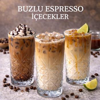 Espresso Kahve,Soğuk Süt, Beyaz Çikolata Sosu,